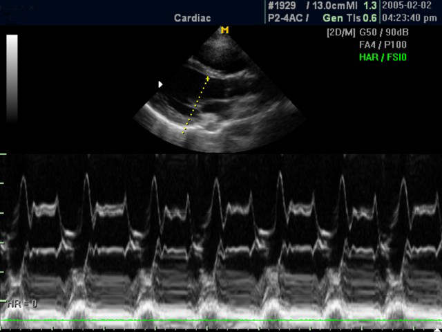 При исследовании в М-режиме принципиально важным является выбор правильной позиции сканирования, например, для исключения отображения движения папиллярных мышц M-курсор должен быть установлен в парастернальной позиции по короткой оси (right parasternal axis view).